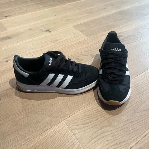 Adidas Sneakers joggesko i størrelse 43 1/3. Skoene er svarte og har en kombinasjon av materialer som gir god støtte og komfort. Egnet for daglig bruk og ulike aktiviteter.