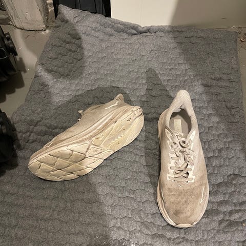 De er nesten helt nye kunn brukt noen ganger. De har blitt litt rosa noen steder på det hvite stoffet. Men det kan hende går bort i vask. Ellers er de helt topp. Kjøpt på sport 1 1.04.2025 og har kvittering