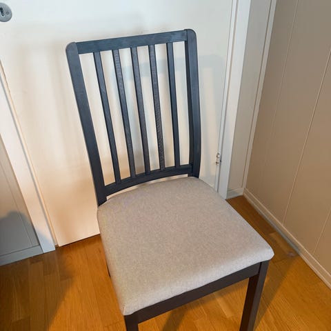 Åtte spisestoler av typen Ekedalen fra IKEA. De er kjøpt i 2019 og vært jevnlig i bruk siden da, og er i god stand. Trekkene kan tas av og vaskes.