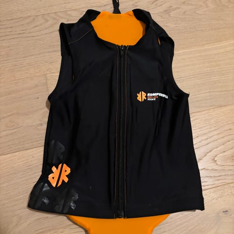 Pent brukt ryggbeskyttelse. Lilla str 140 og blå str 128.