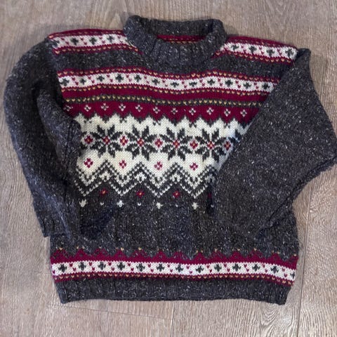 Hjemmestrikket ullgenser (fått i gave) i Marius mønster.