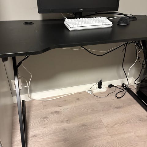 IKEA Fredde Gamingbord selges billig. Bordet er ikke ødelagt, men mangler de små hyllene på siden, og den ene hylla under. Hylle til skjerm følger med, men vi har brukt det uten.