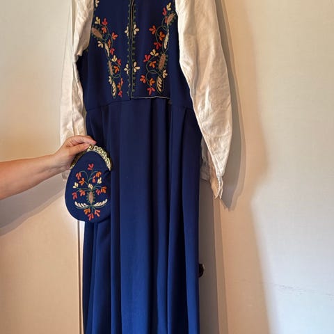 Vurderer å selge min Solør Odal bunad da den er for liten. Pent brukt. Rød brokadevest og blått skjørt. Bildene er lånt, men beskriver riktige farger. Selges med skjorte strl M/L, sølv og sort sjal. Ikke veske og sko. Pris kan diskuteres.