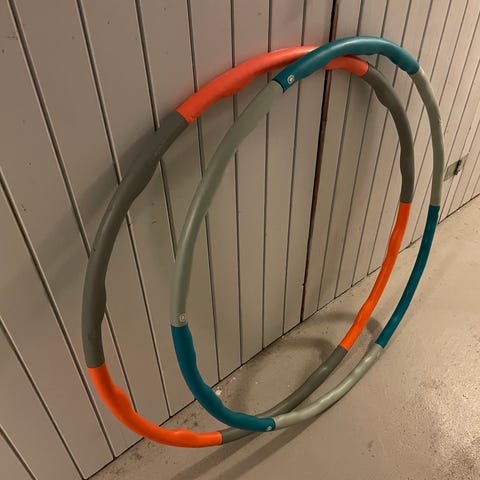 Lilla rokkering med gullstriper – har væske inni som gjør den tyngre og enklere å bruke.