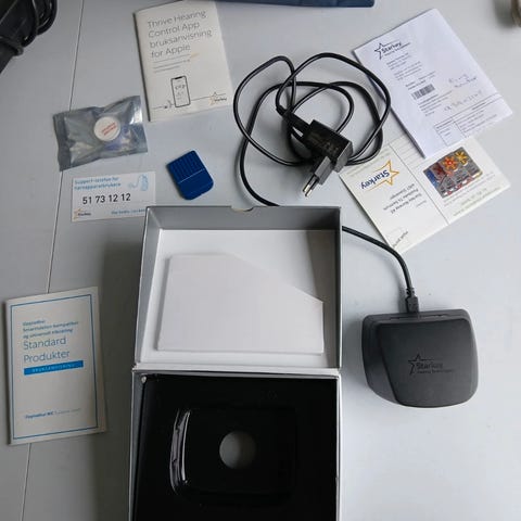 Signia Motion C&G P 7X SLH høreapparat med ladestasjon. Enheten har en beige farge og er designet for å bæres bak øret. Leveres med original emballasje og ladesystem.