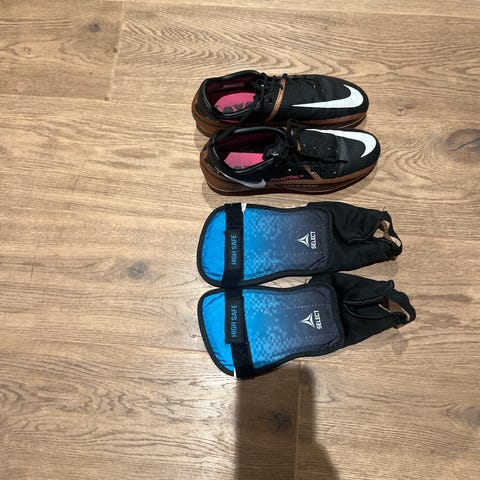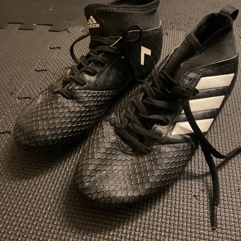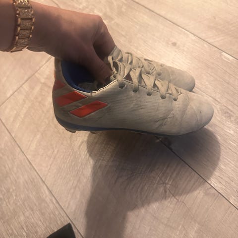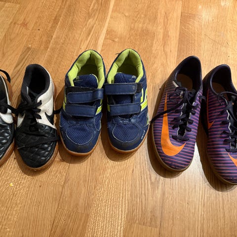 Adidas fotballsko i størrelse 33. Grus/kunstgress-knotter, men mini brukte de på vanlig gress også, uten at det virket til å være problematisk. Mer behagelig for de yngste med tettere knotter.