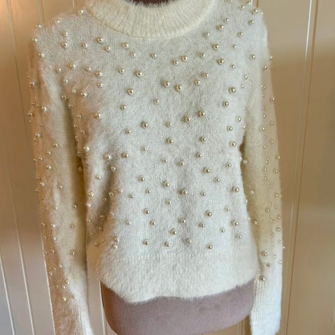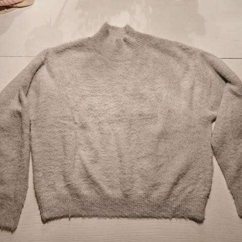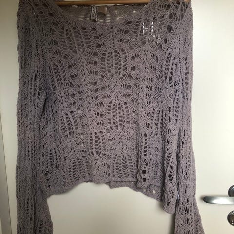 H&M Divided myk lilla fluffy genser med V-neck foran og bak. Kjøpt for 10-15 år siden, men kun brukt et par ganger, så har den ligget i skapet siden. Har klippet av størrelseslappen, men passer str M-L avhengig av ønsket fit. Se mål. Dukken er str 40-42 for referanse. Utrolig fin lillafarge.