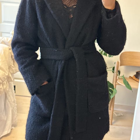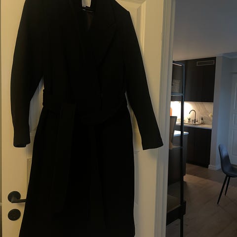 Veldig fin kåpe fra Mango i størrelse M. Kåpen er beige og laget av ull. Den har et belte i livet og stor krage. Pent brukt.