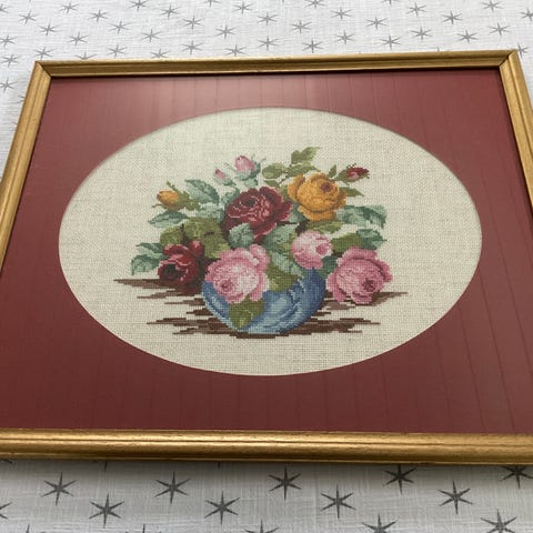 Stort brodert bilde, arvet av min mormor. Flott ramme, i god stand