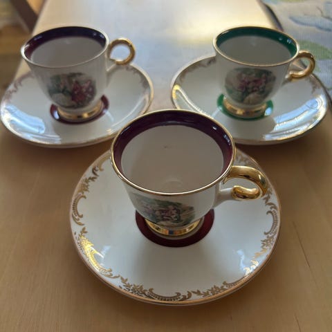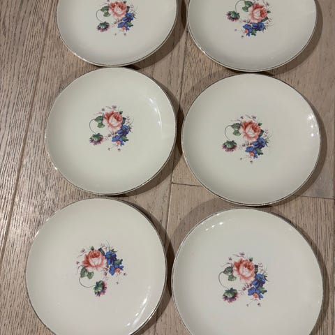 Nydelige Stavanger Flint kakefat. Det største med grønn kant er 27,5 cm. Det røde er 24 cm. De to andre er 27,5 og 20 cm brede. Har bare stått til pynt. Ingen krakelering. Selges samlet.