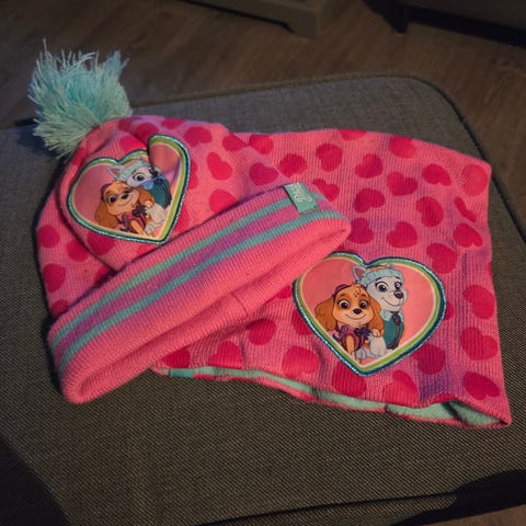 Rødt/mønstret sett: Heldre stella, 50% merinoull / 50% polyester