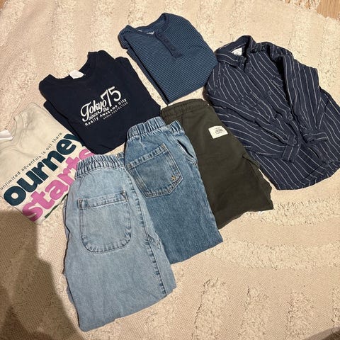 Klespakke til gutt. Størrelsene varierer fra 110-122. Klærne er brukt og kan ha noe merker. Pakken inneholder vinterjakke fra Zara str 110, vest fra reflex str 122, jakke fra Ellesse str 116-122, Vans sko str 30, sko fra Hm str 31, 2 skjorter, T-skjorter og gensere.