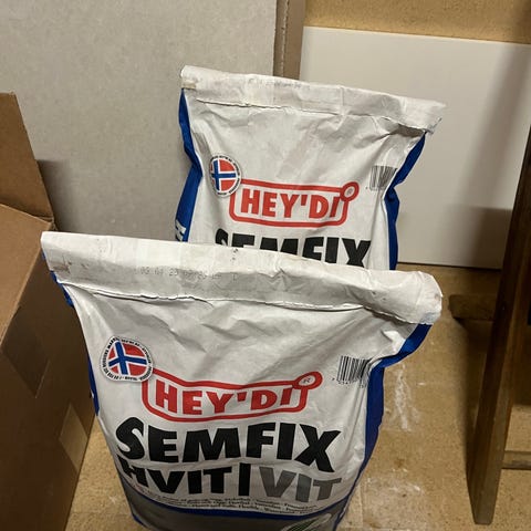 Opprinnelig 15kg sekk med flislim, brukt ca. 4kg.
