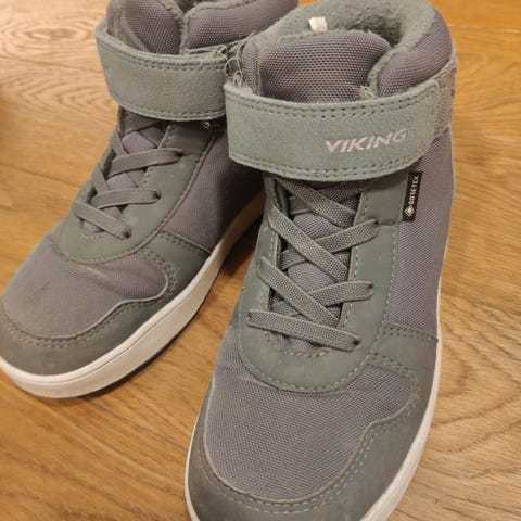 Viking Beito GORE-TEX vinterstøvler i størrelse 35. Kjøpt våren 2025, på tampen av sesongen, kun brukt et par uker før de ble byttet ut med joggesko. Meget pent brukt. Kan i følge Viking vaskes i maskin, vil nok etter en vask se ut som nye.
