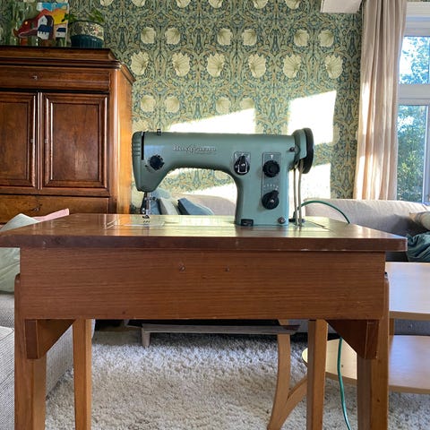 Klassisk Husqvarna Automatic symaskin fra 50–60-tallet, svensk kvalitet i tidløs retrofarge. Leveres med original koffert. Original mintgrønn/turkis lakk (svært populær)