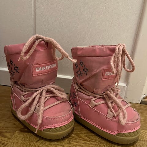 Moon Boot barne vinterstøvler i størrelse 19/21designet for jenter. Støvlene er rosa og laget med isolerende materiale for å holde føttene varme.