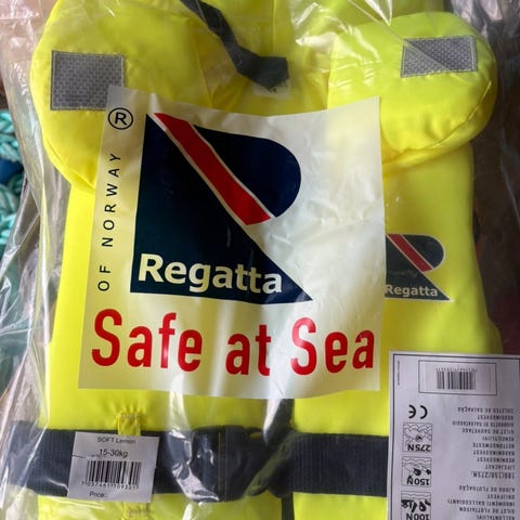 Regatta Redningsvest i to størrelser: 30-50 kg og 50-70 kg. Vestene er i svart og hvit farge, designet for sikkerhet ved vannsport og fritidsaktiviteter. Utstyrt med justerbare stropper og belte for god passform.