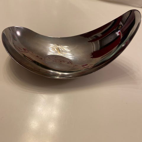 Georg Jensen Legacy skål i metall med polert overflate. Skålen har en rund form med bølgete kantdetaljer.