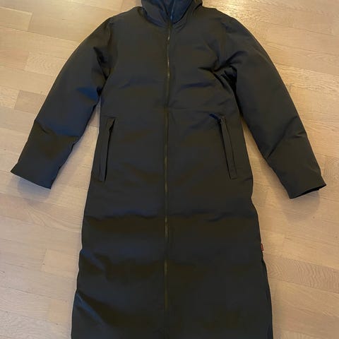 Utrolig varm og lett dunkåpe fra colmar selges. Str XS, men vil også passe en M da den er oversized. Du vil ikke fryse med denne på. Den har fått noen små hull etter stjerneskudd på skulderen, men det er ubetydelig for bruken og syntes ikke så godt med klesteip på.