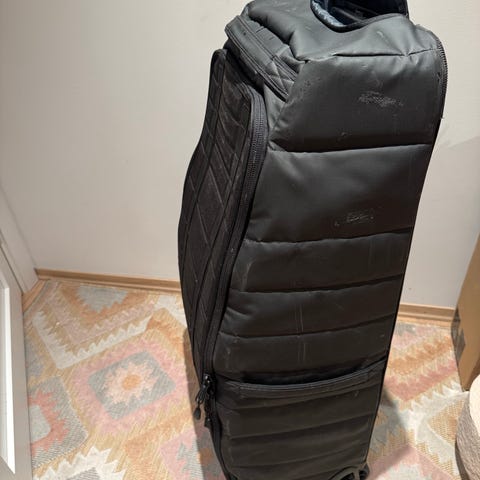 Grønn og fin DB Hugger Roller Bag 90L. Noen mindre slitasjemerker her og der etter bruk, men ikke noe som går utover funksjon - funker slik som den skal
