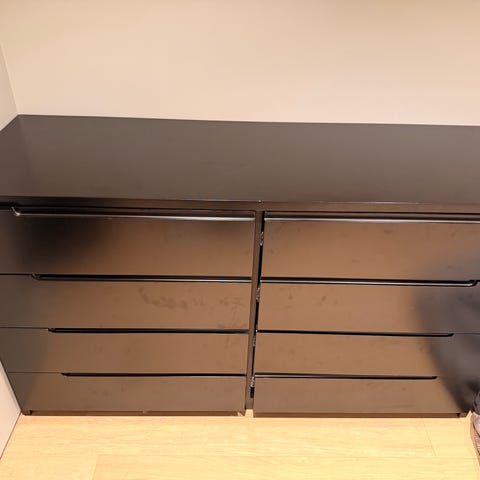 Selger vårt TV-bord med tilhørende kommoder. Bordet er laget i metall med en glass dør som kan skyves. og har et tidløst, stilrent design som passer til de fleste stuer. Det har vært i bruk i 6 år, men er fortsatt i god stand. Perfekt for TV, mediautstyr og oppbevaring av bøker, dekor eller annet.