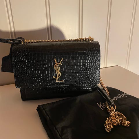 Strukturert veske fra Saint Laurent i skinn med sort sateng på innsiden. Dust bag og kort med serienummer medfølger.