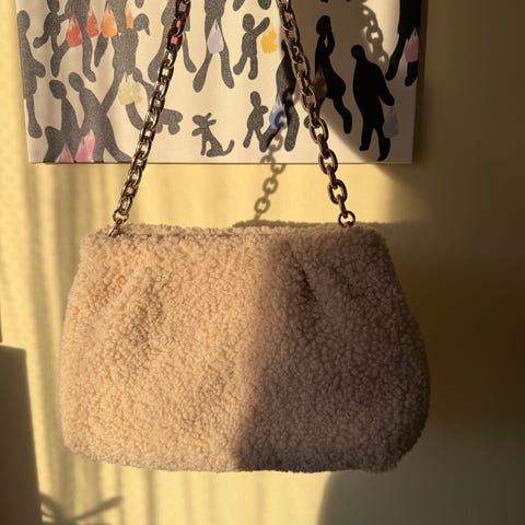Beige veske i fluffy stoff fra H&M. Brukt en gang. Selges kr 50,-