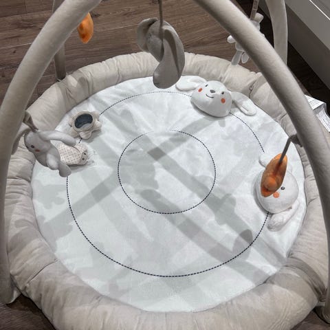 Myk PLAY Bunny babygym fra Beemoo med søte kosedyr. Den har et lite speil. Perfekt leke som stimulerer ditt barns utvikling. Buen er avtagbar og babygymmen kan brukes som lekematte.