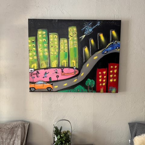 Selger et vakkert og fargerikt bilde av den anerkjente amerikansk-kroatiske kunstneren Marko Mavrovich (f. 1960). Bildet er et seriolitografi, en teknikk som kombinerer serigrafi og litografi for å skape et levende uttrykk med fantastisk fargedybde.