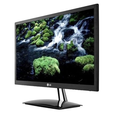 LG 23-tommers skjerm med standard svart ramme og stativ. Passer til generell bruk som kontorarbeid, nettlesing og multimedia.