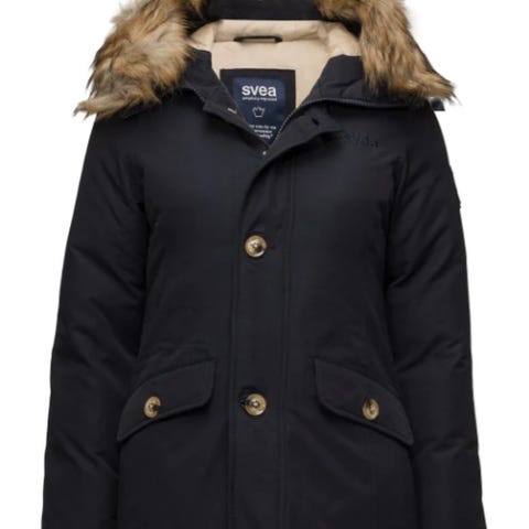 Veldig pent brukt og renset SVEA jakke i modellen Miss Smith. Praktisk og isolerende jakke med innerlommer og avtagbar hette (se bilde). Hempen er dessverre røket, men dette kan enkelt fikses.