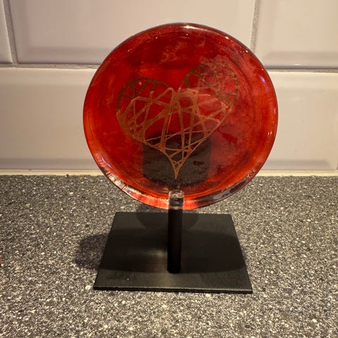 Dekorativ håndlaget glasskunst fra Steninge Slott, signert 2004.