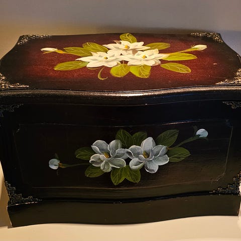 Oppbevaringsboks i tre med fjernkontroll og japansk kimonostoff