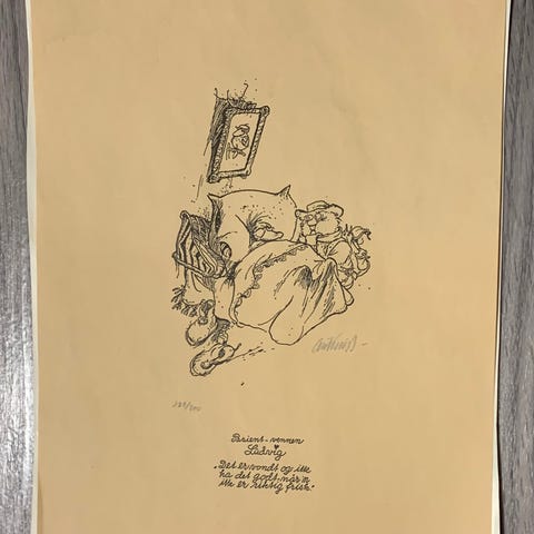 Arne Lygres skuespill Minnetriologien illustrert i farger av Sverre Bjertnæs, som har håndsignert boken. Pen, ulest.
