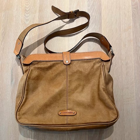 Skulderveske i lær selges da den ikke bruker så mye. Alt funker som det skal.