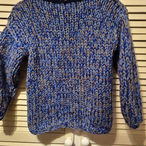 Ny hjemmestrikket tykk ullgenser ca. 14 år/xs i litt vid modell selges for 350kr.