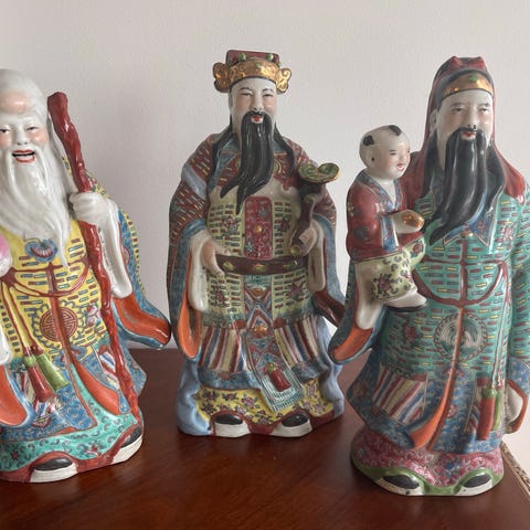 Asiatiske figurer, ca 50 cm høye, selges samlet