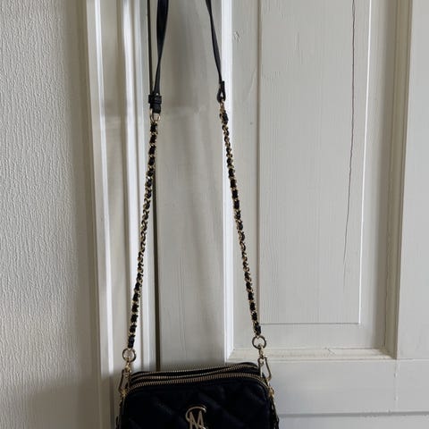 Hvit veske 18 x 12 cm, har 2 rom og plass for mobil og mindre lommebok eller briller.