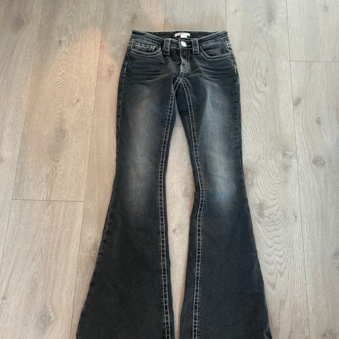 Gina Tricot Perfect Jeans denimbukser i blå farge. Størrelse W32, damemodell. Laget av denimmateriale. Bukser med vidde i bena.