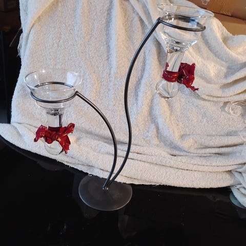 Fine lyesestaker i smijern. 40 cm høye, skåla på toppen er 12 cm i diameter