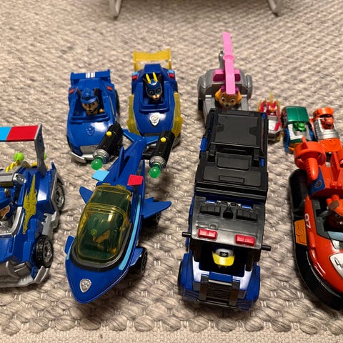 .Diverse leker selges etter at minsten i huset har ryddet i lekene sine. Traktorer, brannbiler og diverse paw patrol. Noen av dem med lyd/lys. Selges helst samlet pga han spare til noe