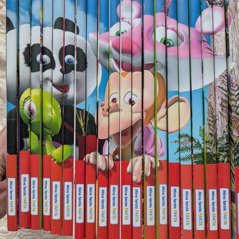 Mine første fakta fra Go'boken, tilsammen 21 bøker. Så vidt jeg forstår er dette den komplette serien. Har kun bøkene, ikke CD'er og annet tjafs som visstnok følger med når de er nye. Noe bruksmerker spesielt i utvendige hjørner, men ellers i god stand. Står skrevet navn i navnefeltet i 3 av bøkene. Selges kun som komplett pakke.
