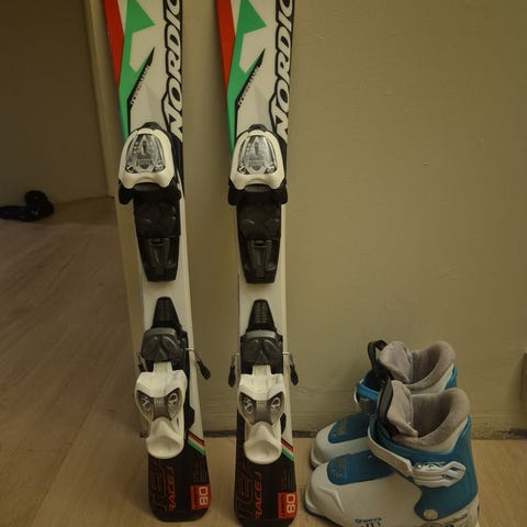 Brukte 80cm Elan slalomski til barn. Noen bruksmerker/litt rust på stålkanter.