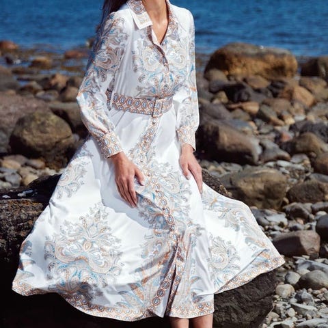 Floyd festkjole i størrelse XS, flerfarget mønster. Kjolen egner seg til formelle eller festlige anledninger.