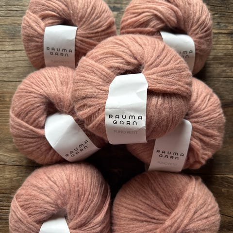 Rauma Puno Petit Alpakka garn, 50 gram per nøste, farge 283 lilla. Materiale består av 56 % baby alpakka, 10 % ekstra fin merino og 34 % polyamid. Garnet har løpelengde på 175 meter per 50 gram. Anbefalt pinnestørrelse er 3-5 mm, og strikkefasthet er 18 masker per 22 rader på 10 cm.