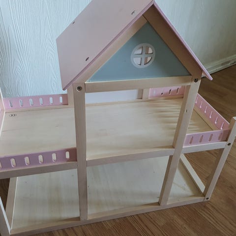 Stort dukkehus i tre med mye potensial, selges som oppussings-/fikseprosjekt. Et solid trehus som passer perfekt for kreative barn eller voksne som liker å reparere og gi nytt liv til leker.