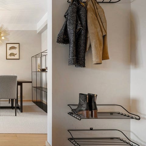 Töjbox fra Woud. En oppbevaringsmøbel som er perfekt både i gangen og soverommet. Den er utformet på en måte som gjør at du verken trenger skruer eller lim for å montere den. Det er god plass til å henge klærne dine, samt et hylleplan for hodeplagg etc.