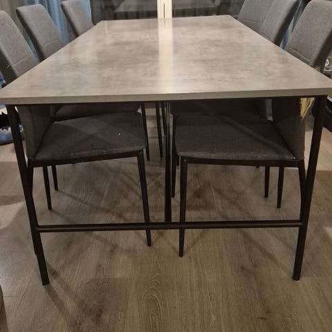 Bordet er 140cm uten ileggsplater, kan bli opptil 220cm med 2 ileggsplater.