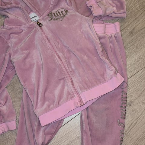 Pent brukt juicy joggedress selges, med glitterdetaljer.