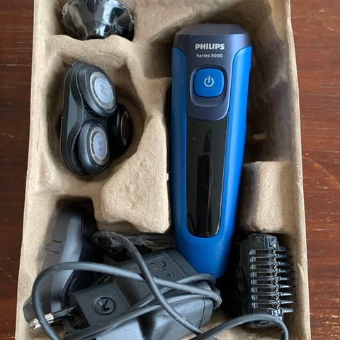 Philips Multigroomer trimmer sett med flere trimmerhoder og kammer for ulike lengdeinnstillinger. Passer til trimming av hår og skjegg.
